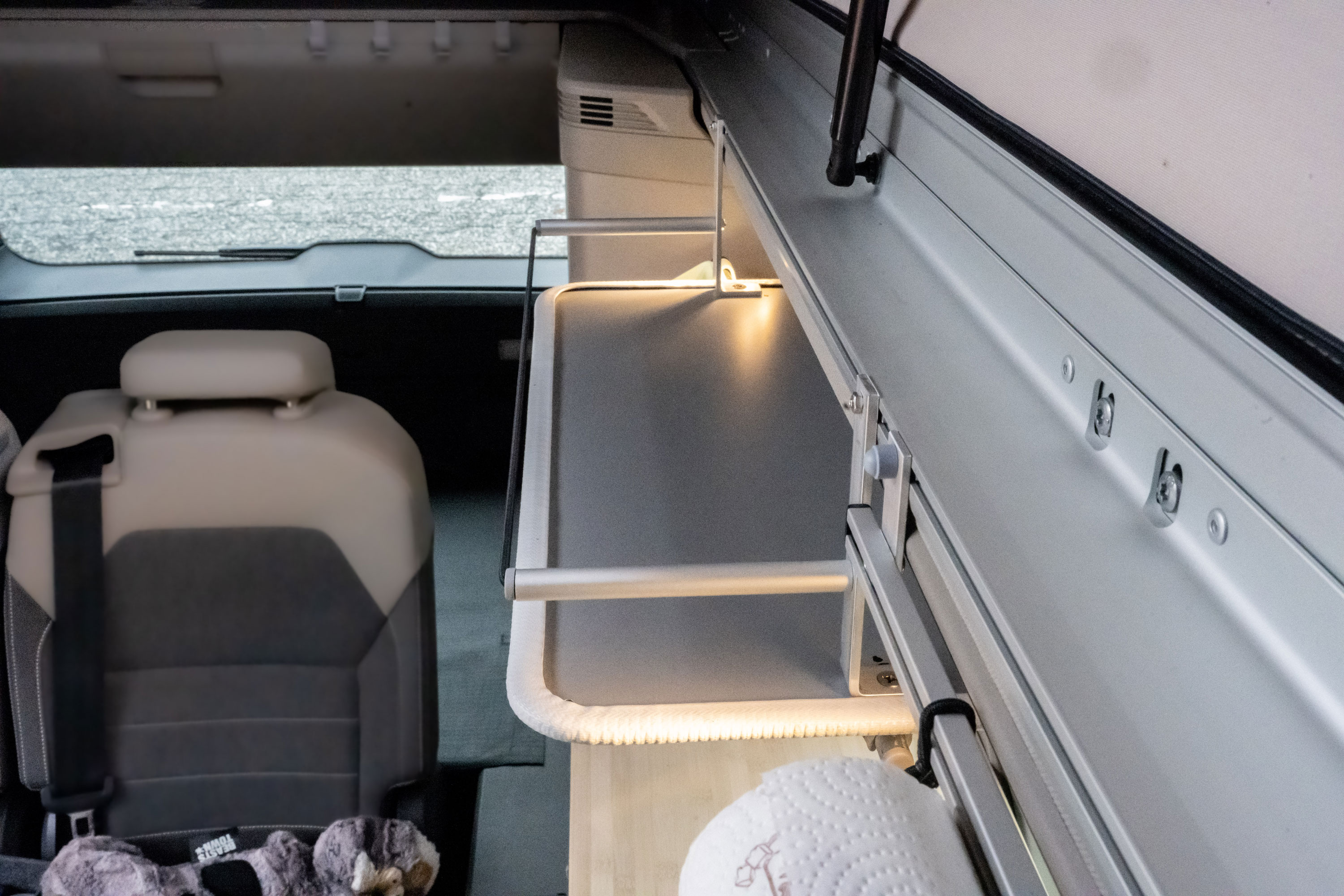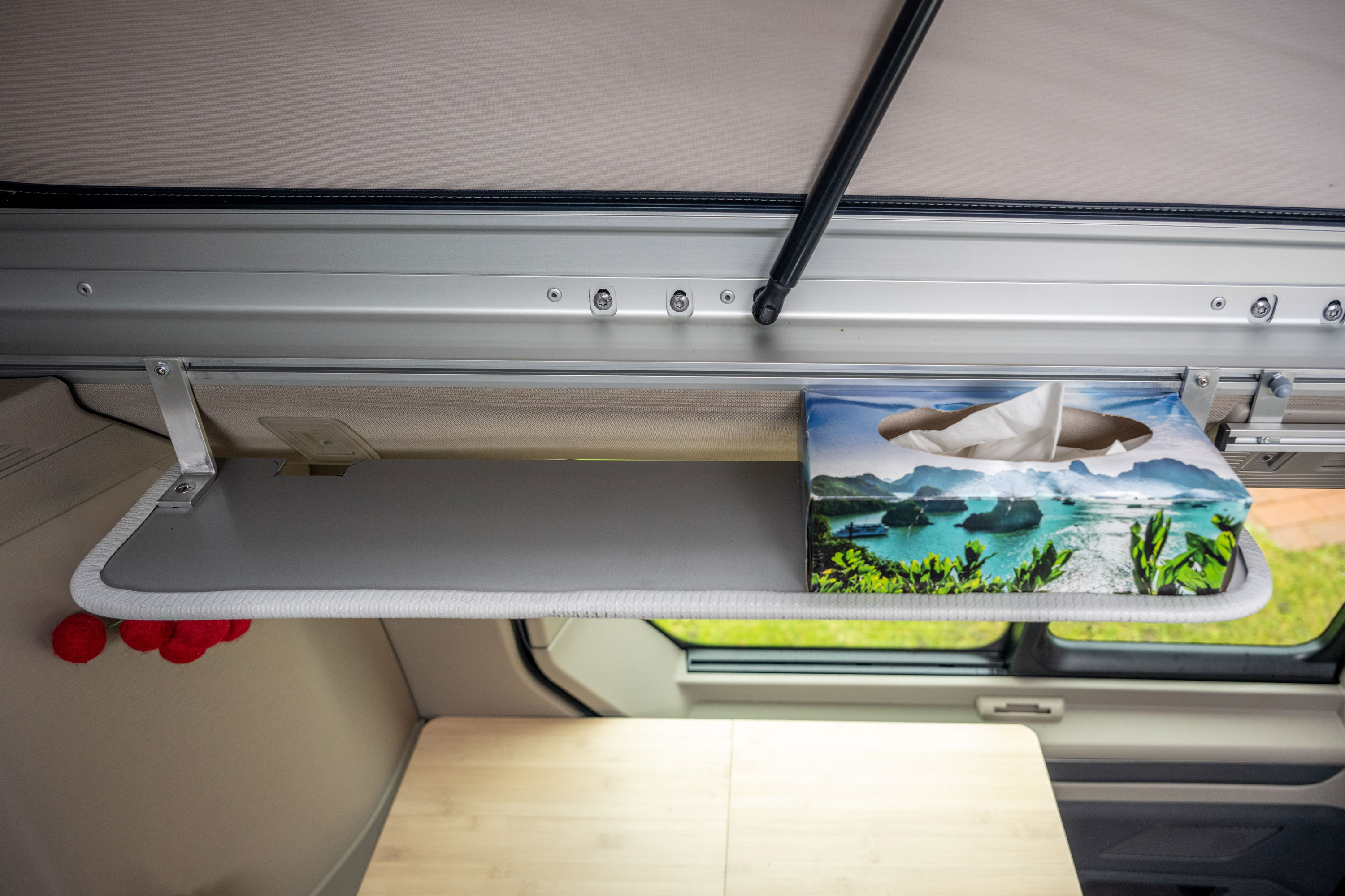 Bring Struktur und Stil in deinen Camper: Das Calitop Seitenregal ist die ideale Ergänzung für deinen VW T7 California – egal ob Beach, Coast oder Ocean.