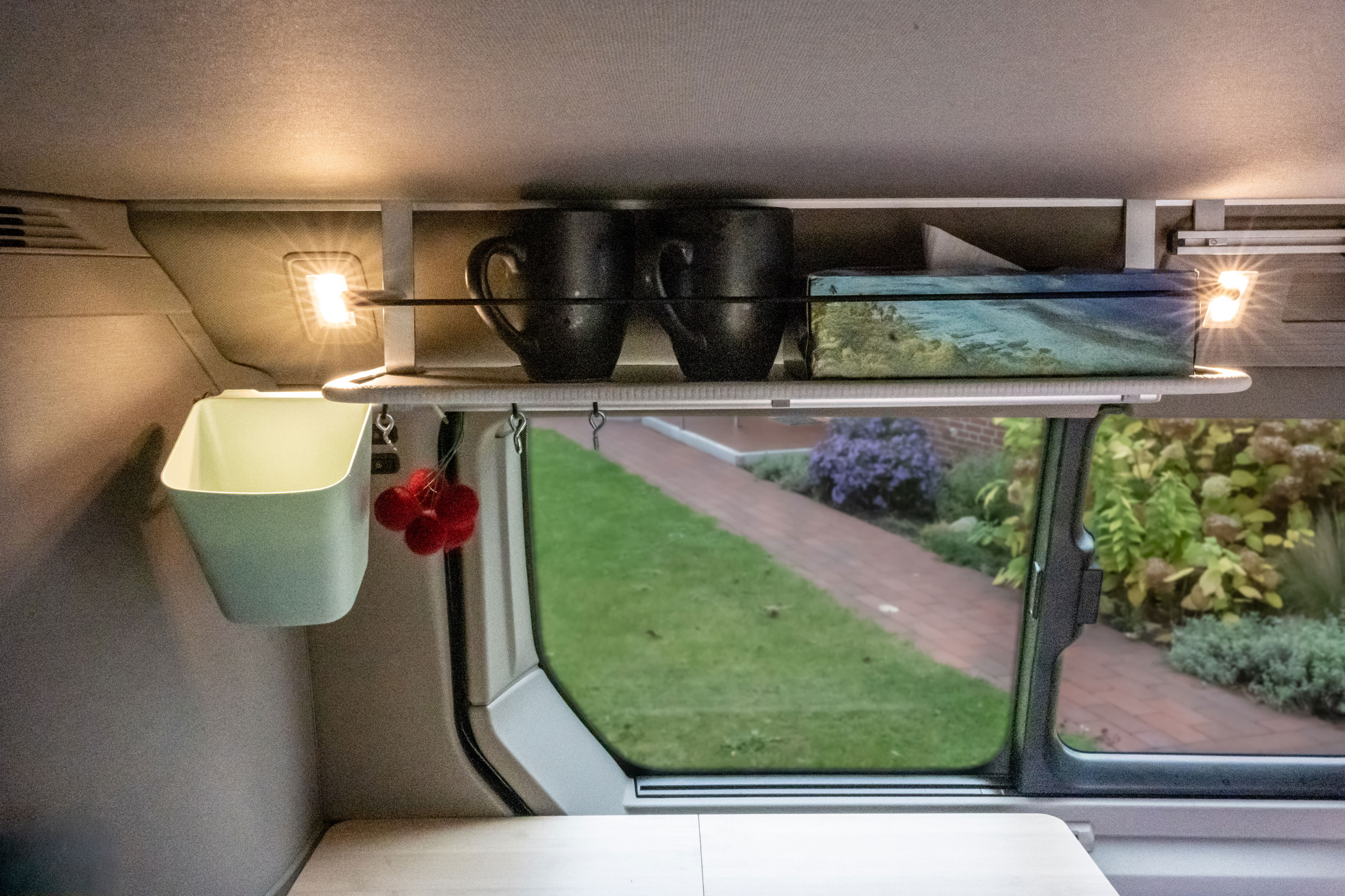 Durch die höhere Position im Cali bietet das Regal eine dezente und funktionale Ablagefläche, ohne den Innenraum zu überladen.